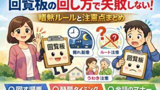 回覧板の回し方には、実は明文化されていない“暗黙ルール”があります。はじめて担当する方や、なんとなく回している方にとっては「これで合ってるのかな?」と不安になる場面も多いのではないでしょうか。回覧板は単なる紙のやり取りではなく、ご近所同士の...