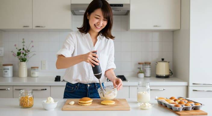 また、離乳食や簡単なお菓子作りをする家庭にも便利で、手軽に使える点が魅力です。一方で、ケーキやマカロンのように繊細で大量のメレンゲやホイップが必要な本格お菓子作り派には不向きで、専用のハンドミキサーや泡立て器を使った方が仕上がりの安定感が高まります。