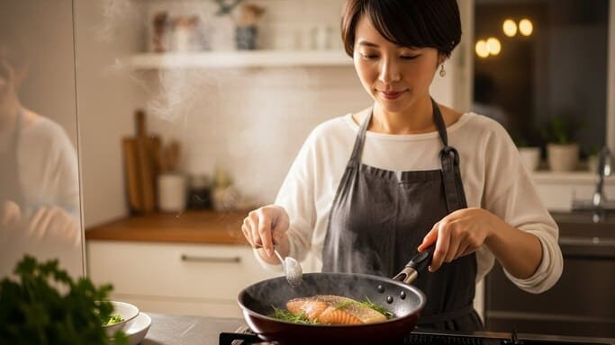 代表的なのが、白ワインや料理酒、少量の味噌、バターなどです。これらは強く主張する味ではありませんが、鮭の香りと乳製品のコクの間に入り込み、両者をなじませる働きをします。重要なのは量ではなく、どのタイミングで、何のために使うかを意識することです。中和目的の調味料は、控えめに使うほど効果を発揮しやすくなります。