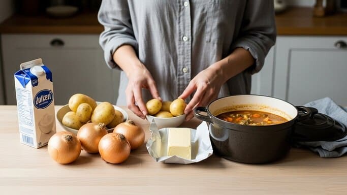 でんぷん質は、臭み対策において非常に心強い存在です。じゃがいもやかぼちゃ、玉ねぎなどのでんぷん質の多い具材は、スープの中で余分な香りを抱え込み、全体の印象を丸く整える役割を果たします。これらの具材が入ることで、鮭の香りが直接前に出るのを防ぎ、シチューとしての一体感が生まれやすくなります。