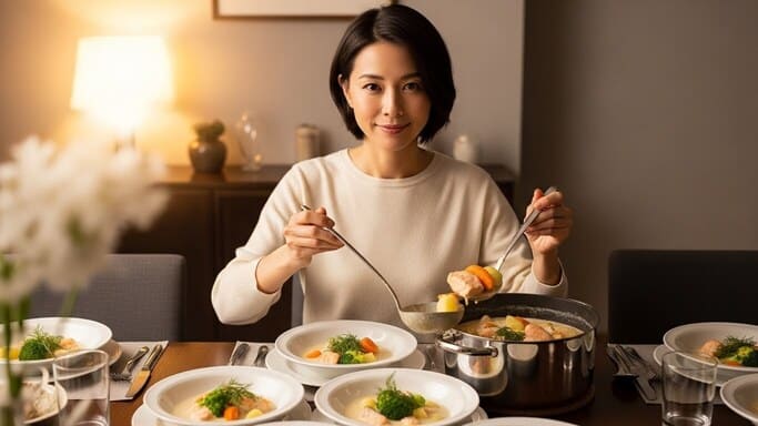 鮭クリームシチューの場合、下準備と加熱の順番が整っていれば、強い隠し味がなくても十分にまとまりのある味になります。どうしても物足りなさを感じる場合は、隠すために足すのではなく、整えるために少量加えるという意識が大切です。隠し味は魔法の一手ではなく、最後の微調整として使うものだと捉えると、失敗しにくくなります。