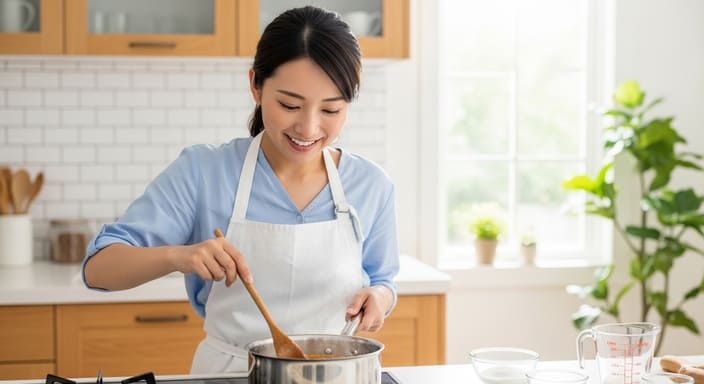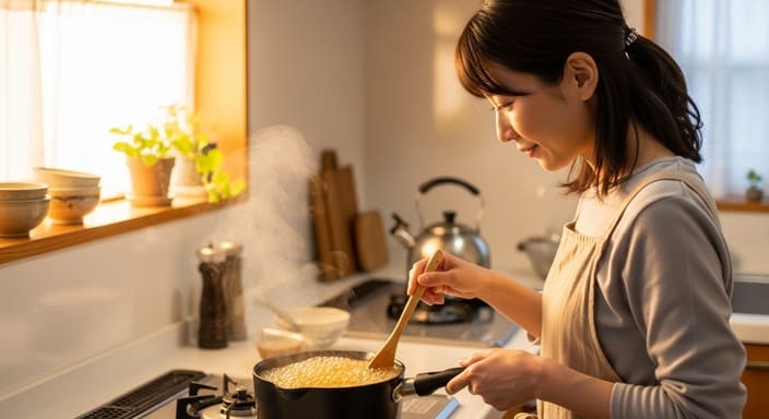 さらに詳しく言うと、再加熱時には焦げ付き防止のために厚底の鍋を使用するのがおすすめです。金属製のヘラではなくシリコンヘラを使うと、鍋底を優しくこすりながら全体を均一に混ぜられます。加熱温度は弱火〜中火をキープし、急激に沸騰させると水分が飛びすぎて仕上がりが硬くなることがあります。