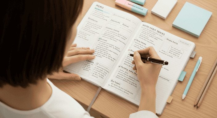 忙しい人ほど、手帳は“最小限の労力で最大限の整理”ができる方法を選ぶのがポイントです。マンスリーには予定をひとことだけ書き、ウィークリーには「今日の最優先タスク」を1つだけ書くミニマム運用でも十分機能します。