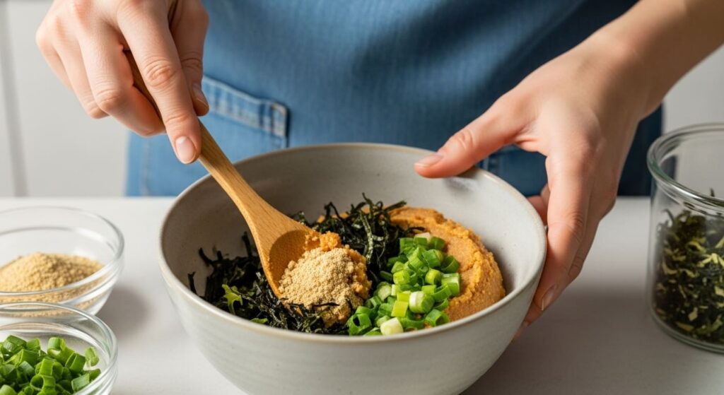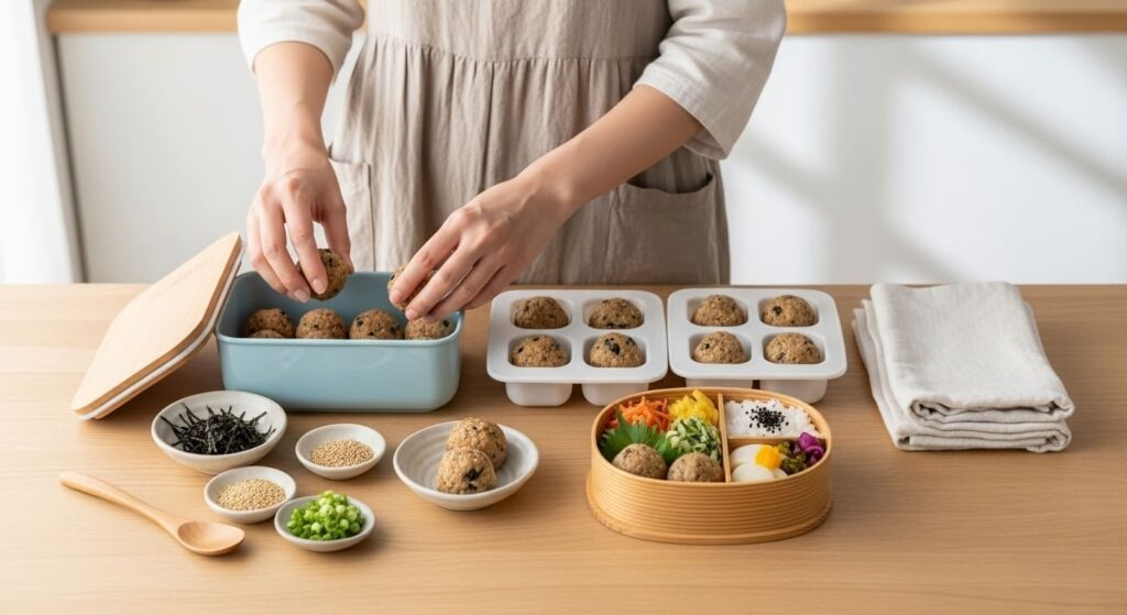 味噌玉は「味噌+だし+具材」を混ぜるだけで作れるため、料理初心者でも簡単にスタートできます。基本の配合は“味噌大さじ1+粉だし少々+乾物具材”でOK。混ぜて丸めたら、ラップに包んで保存するだけです。ポイントは、具材に“乾物を使うこと”。生の食材は傷みやすくランチ向きではありません。