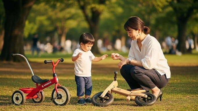今は買わないという選択は、何もしないことではなく、子供をよく観察するための時間を取るという前向きな判断です。公園遊びや日常の外遊びを通して体を動かす経験を積むだけでも、次に選ぶべき乗り物の方向性は自然と見えてきます。