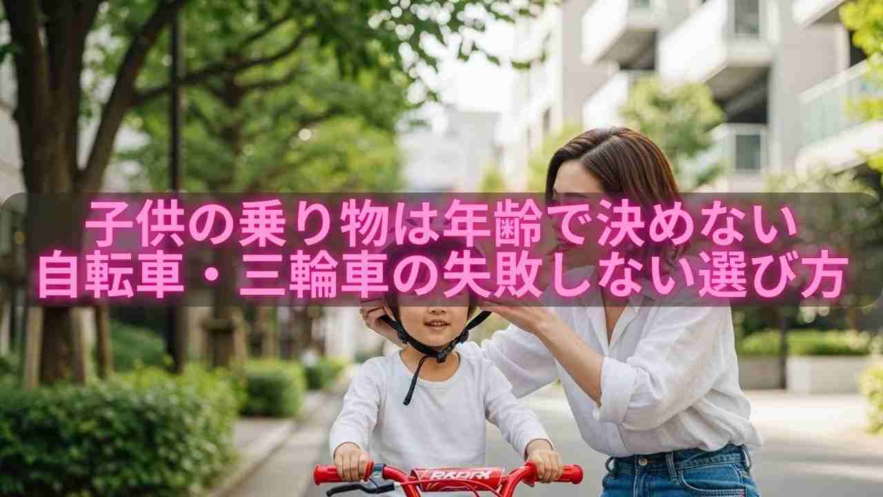 結論からお伝えすると、子供の乗り物選びで一番失敗しやすいのは「年齢だけ」で判断してしまうことです。○歳だから三輪車、○歳だから自転車――この考え方は分かりやすい反面、子供の発達や性格を置き去りにしてしまいがちです。