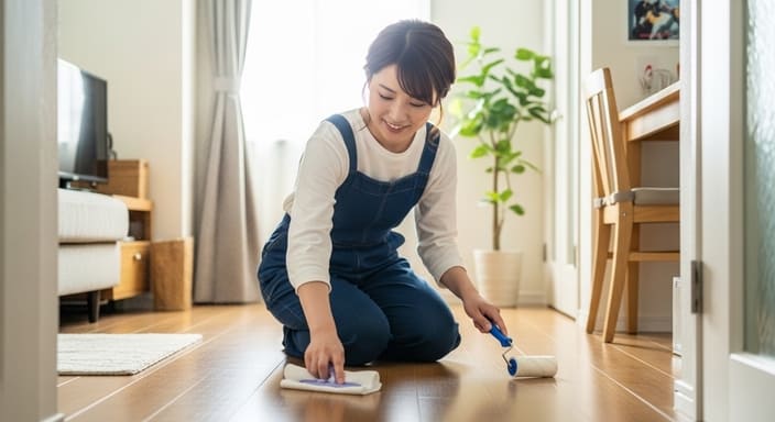 フローリングはホコリが目立ちやすい反面、ワイパーやシートで簡単に取れるというメリットもあります。飲み物をこぼしたときや、髪の毛が落ちたときも、その場でサッと拭き取れるので、汚れを溜め込まずに済みます。カーペットのように「吸い込まないと取れないゴミ」が少ないため、掃除機なしでも清潔感を保ちやすいのです。床材の性質を活かせば、道具を増やさなくても十分に対応できるケースは多いでしょう。