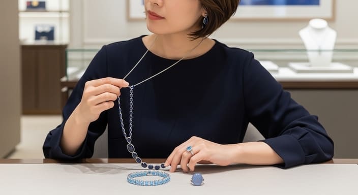 この記事では、青い石を身につけたときに与える印象の正体から、色味ごとの違い、身につける位置、服との合わせ方、そして失敗しにくい選び方までを、できるだけやさしく、実用目線で解説していきます。
