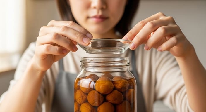 重石を外すタイミングは、梅干し作りの中でも特に迷いやすいポイントです。早すぎると白梅酢が十分に上がらず、遅すぎると梅が潰れてしまうこともあります。大切なのは「日数」だけで判断するのではなく、梅と白梅酢の状態をしっかり観察することです。見た目・におい・液体の量を総合的に確認すれば、初心者でも安心して判断できます。ここでは、重石を外してよいサインを具体的に解説します。