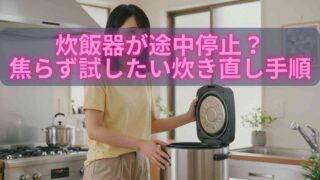 食べ物 炊飯器が途中停止?焦らず試したい炊き直し手順 「炊飯器が途中で止まってる…!」そんなとき、胸がヒヤッとしますよね。夕飯の支度中や忙しい朝に限って、なぜか止まる炊飯器。ですが、落ち着いて対処すればご飯はちゃんと復活します。途中で止まったご飯も、炊飯器の状態を確認して正しく炊き直せば、ふっ... 食べ物